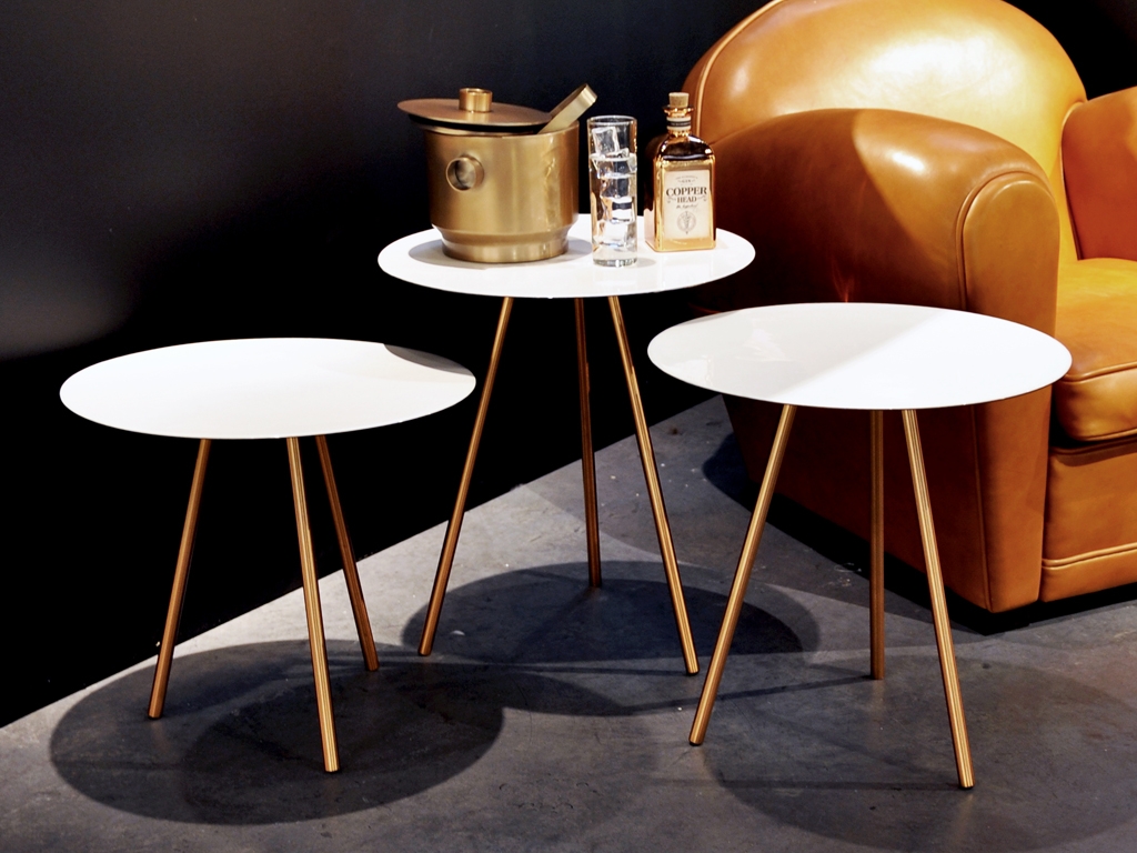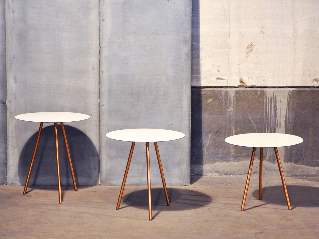 The length of the table-legs differs, whereas the table top, which is made of enamel, is the same. Very stylish and therefore a true eye catcher!