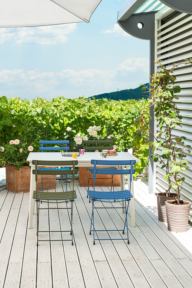 This steel table is protected from corrosion thanks to the cataphoresis process. EMU garden furniture is produced in the Marsciano factory in Italy.