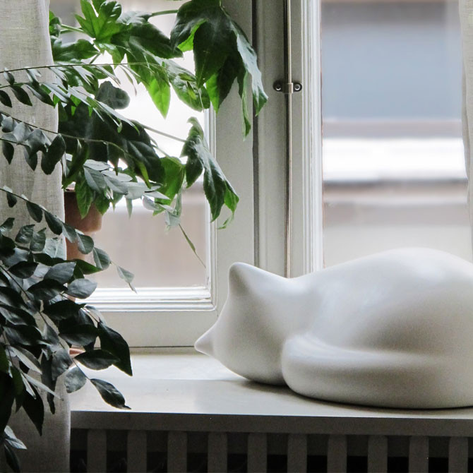 Decorative ceramic cat edited by Vitra. He has a peaceful presence that goes beyond the decorative to communicate a deep sense of contentment.