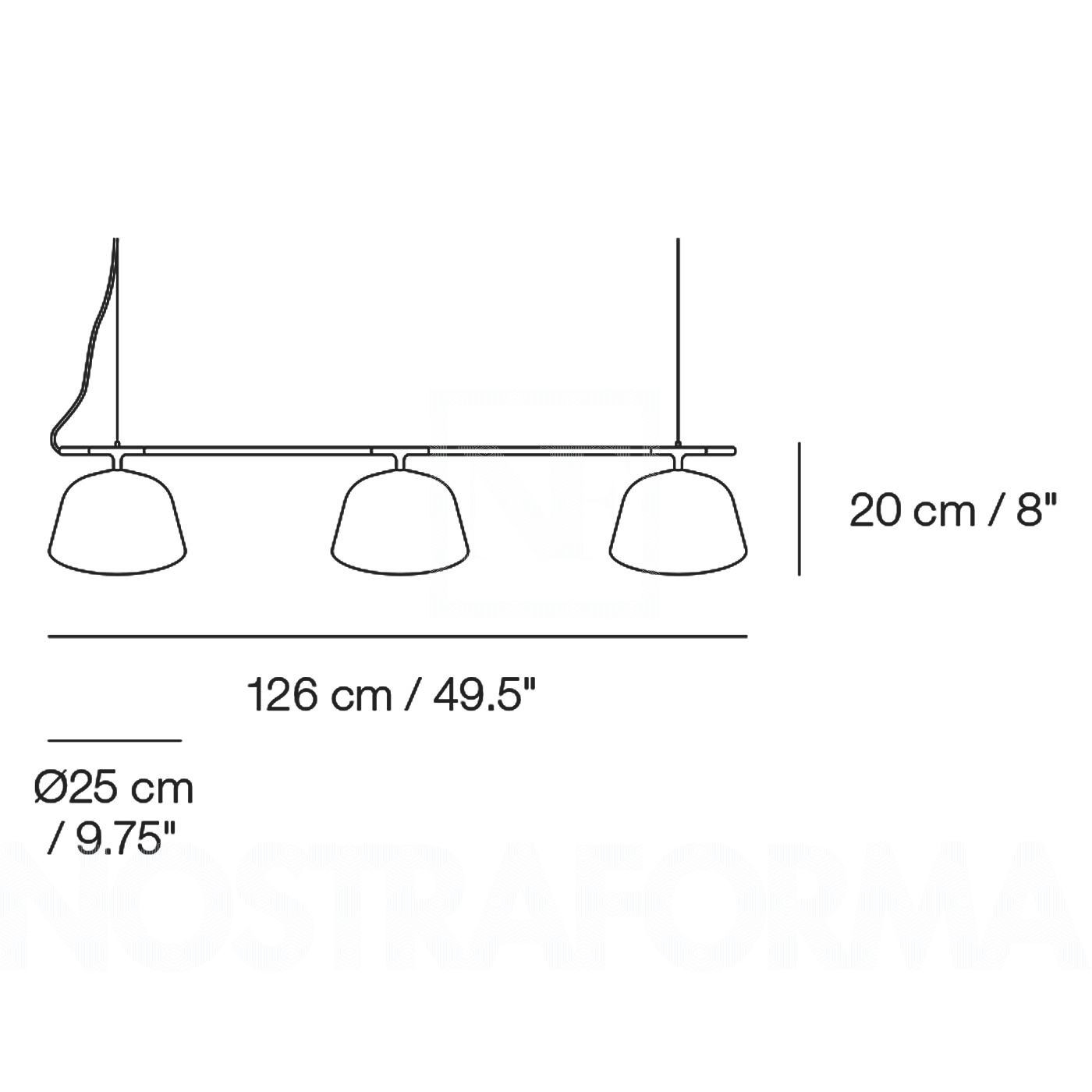 Rail lumineux composé de 3 abat-jours édité par Muuto.