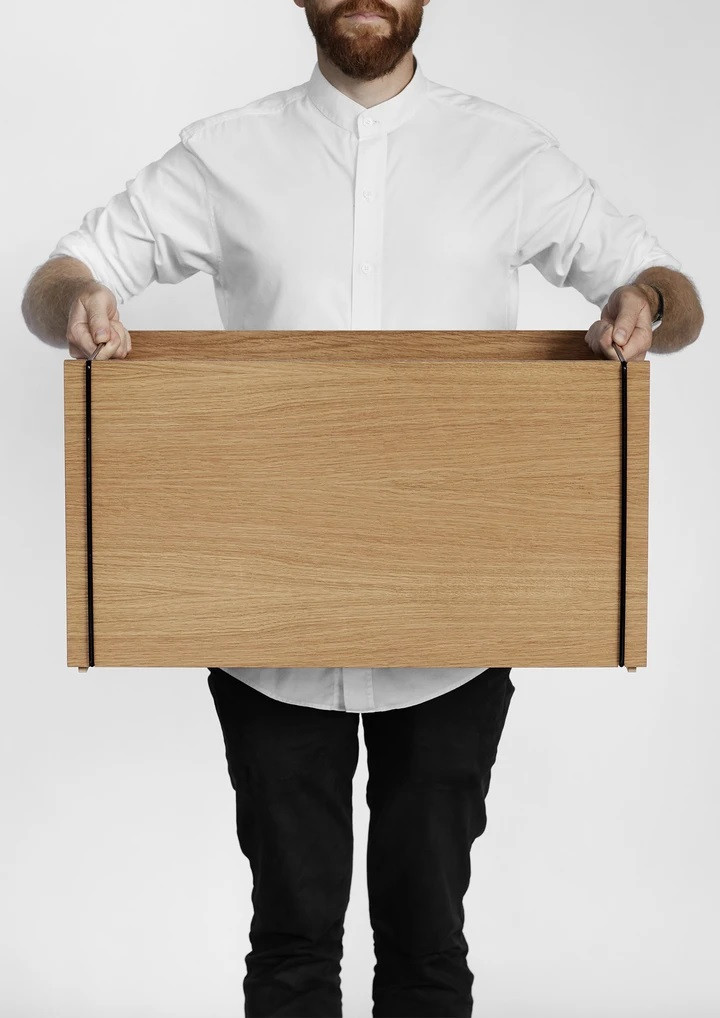Belle boîte de rangement en bois proposée par l'éditeur de mobilier danois "Moebe".