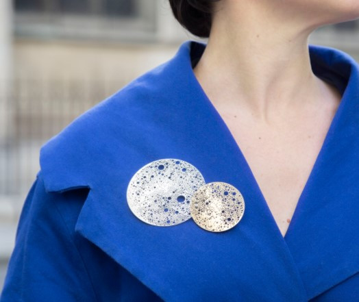 La broche Lunar est légère et hypnotique. Elle s'attache à l'aide d'un aimant.