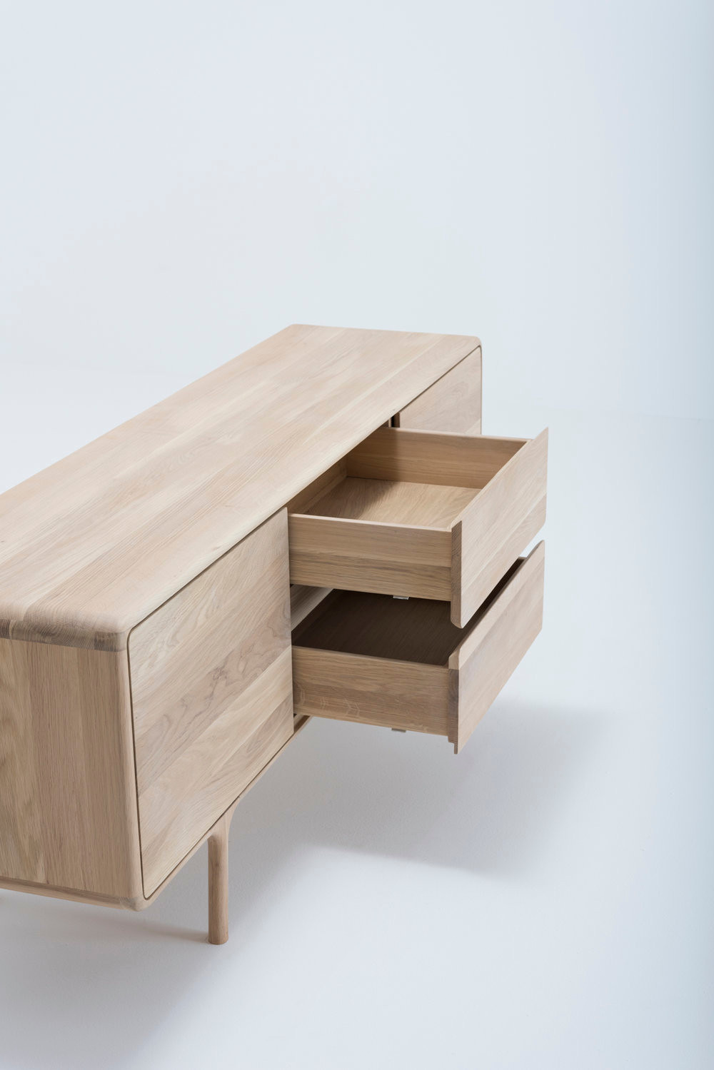 Le buffet "fawn" fait littéralement pénétrer la nature dans votre intérieur. On est séduit par la fluidité des lignes et le très beau travail du bois qui donne envie de caresser ce meuble hors du commun.