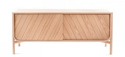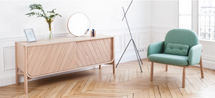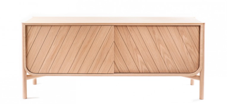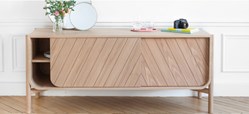 Le buffet "Marius" s'inspire de l’univers maritime en détournant la forme des coques de bateaux. Le motif inscrit sur ses portes rappelle également les voiles d'un bateau.