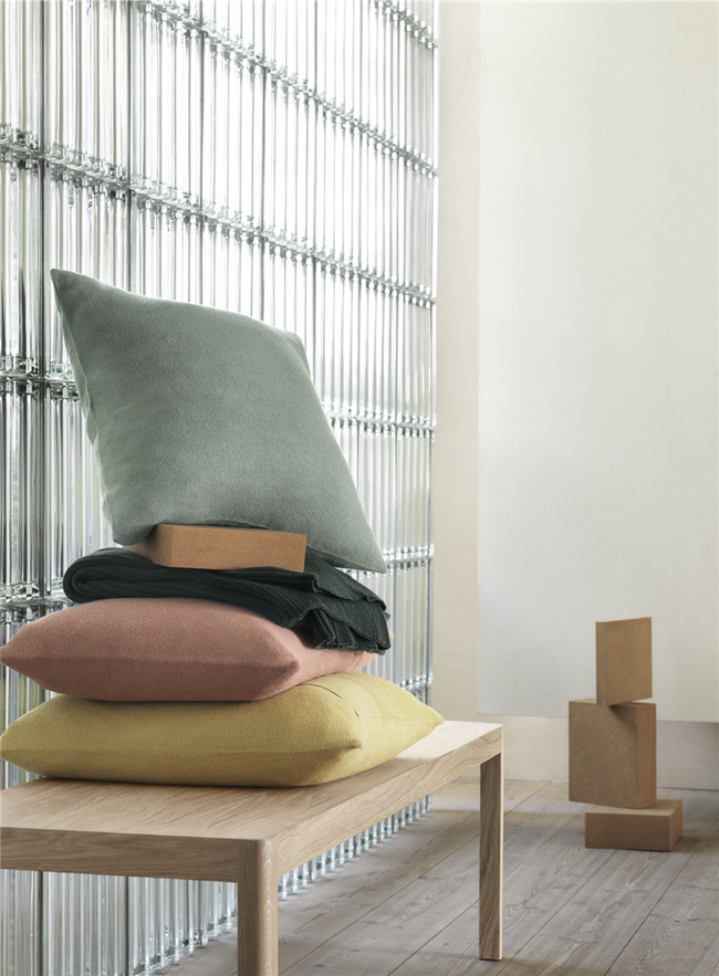 Coussin tout doux en laine de lama conçu par Aiayu pour Muuto.