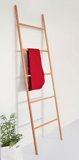 Une échelle en chêne huilé pour y poser vos serviettes de bain ou vos vêtements. Une solution de rangement élégante et mobile conçue par Raumgestalt.