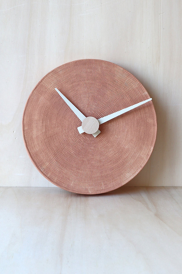 La forme et la matière utilisée (terre cuite réfractaire) font référence de façon poétique à la pleine lune. Plus qu'un objet utilitaire, l'horloge "full moon" apporte une atmosphère et de la grâce dans une maison. Cette horloge est disponible dans plusieurs coloris.