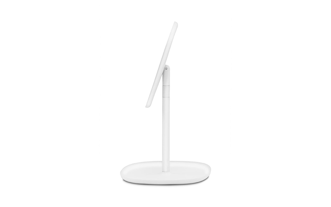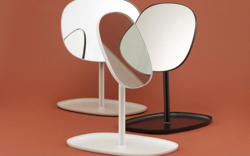 Flip peut pivoter vers le haut ou vers le bas et même tourner à 360 degrés. Grâce à son plateau à la base, Flip s'utilise tant comme un miroir traditionnel que comme un petit espace de rangement. On y dépose des bijoux, du maquillage ou des clés.