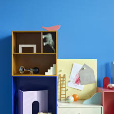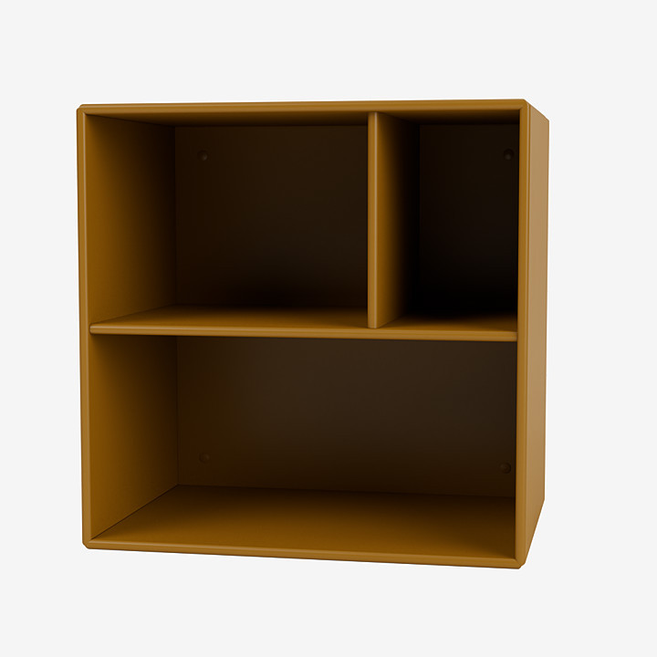 Espace de rangement mural avec compartiments asymétriques proposé par la marque de design danoise Montana.