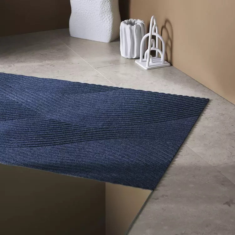 Le paillasson "Sjo" est particulièrement adapté à une utilisation en extérieur. Il a une surface rugueuse et un support caoutchouté.