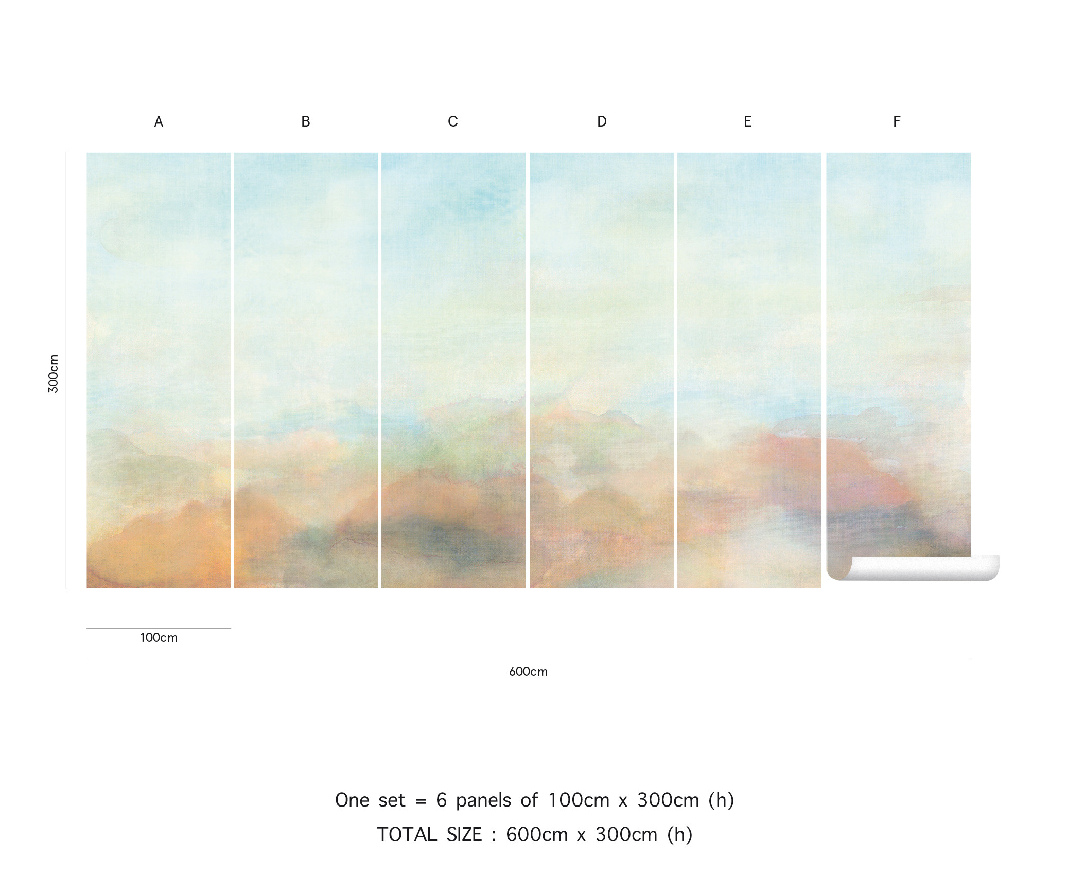La fresque est composée de 6 rouleaux de papier-peint de 100 cm x 300 cm. Il est également possible de demander des dimensions sur mesure. Dans ce cas, le prix sera communiqué sur devis.