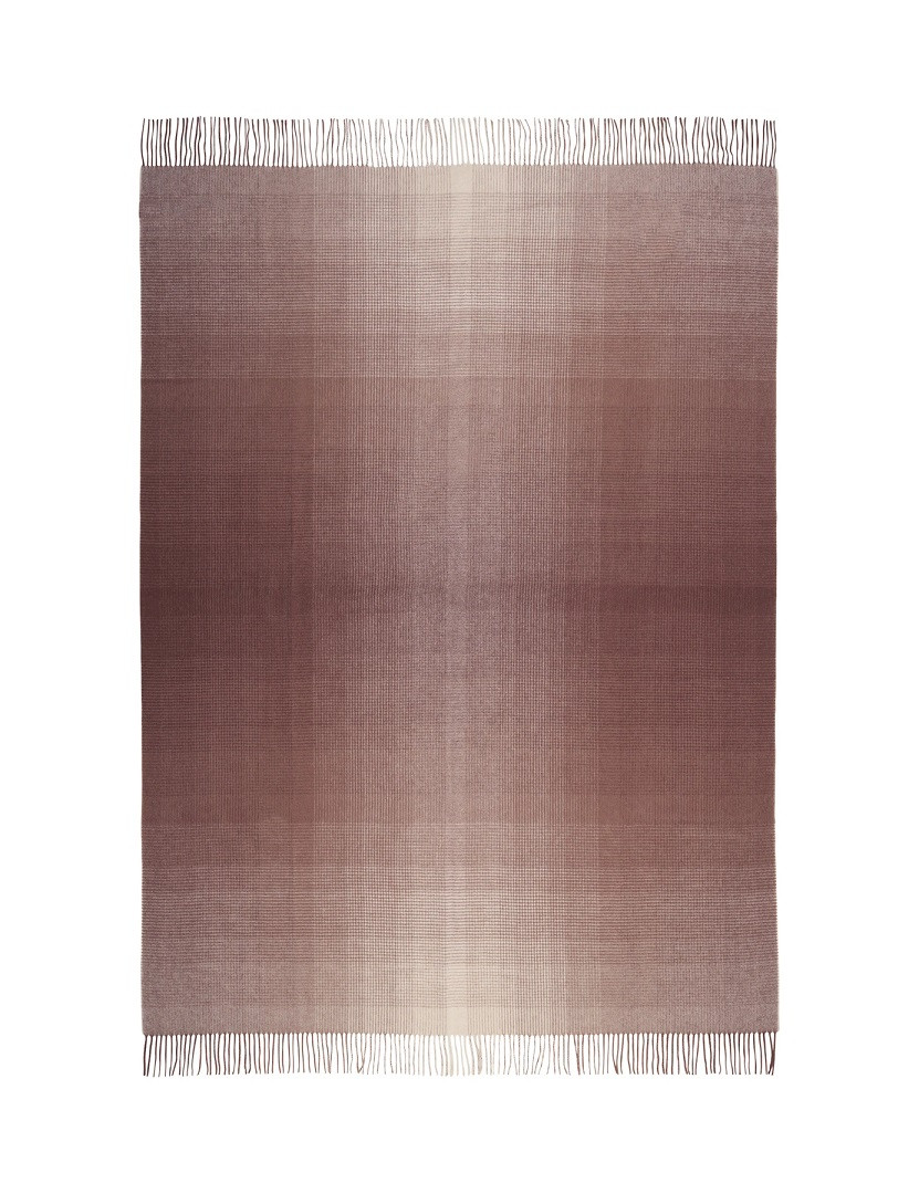 Le plaid "Horizon" passe progressivement du clair au foncé de manière subtile. Il est tissé à partir de matériaux 100 % recyclés.