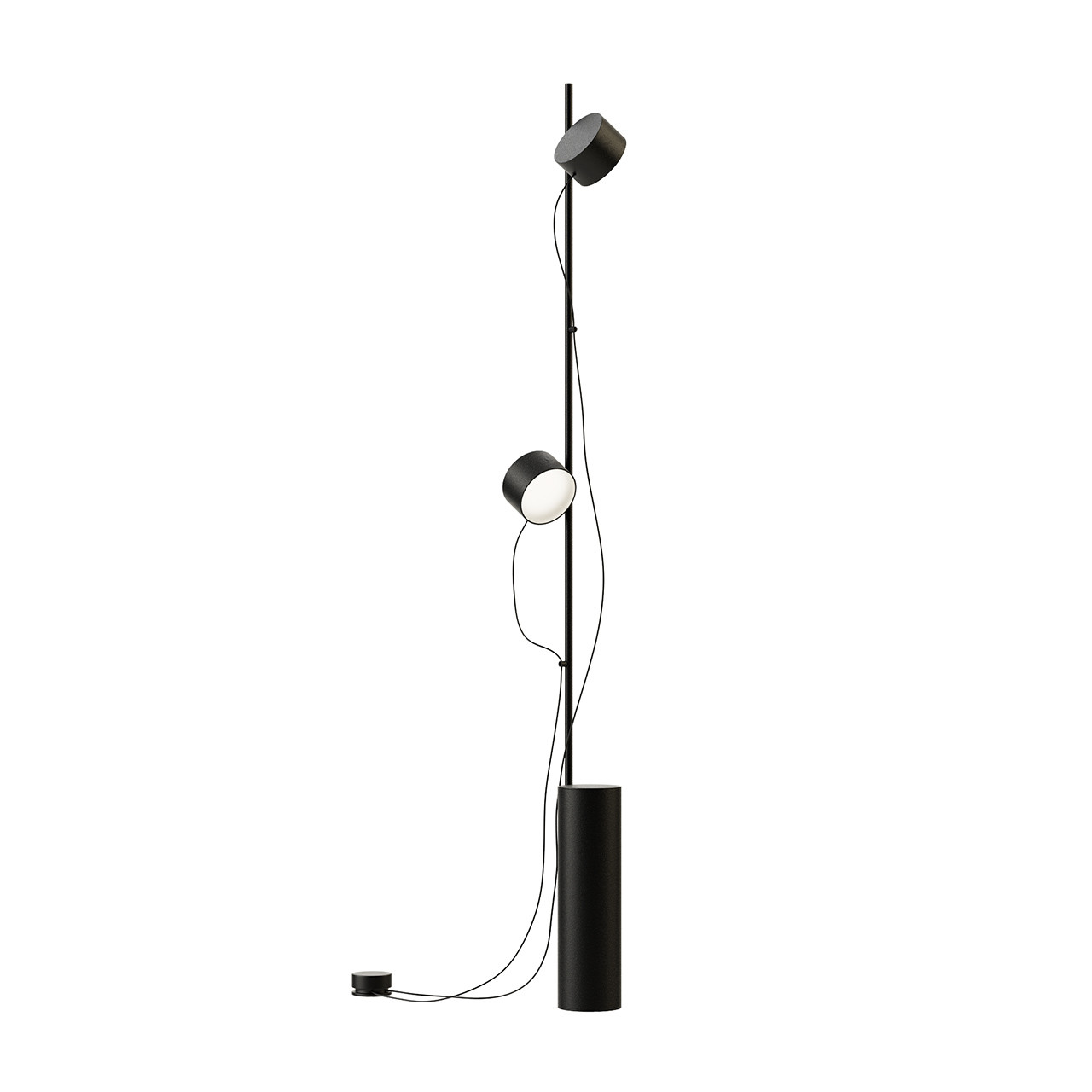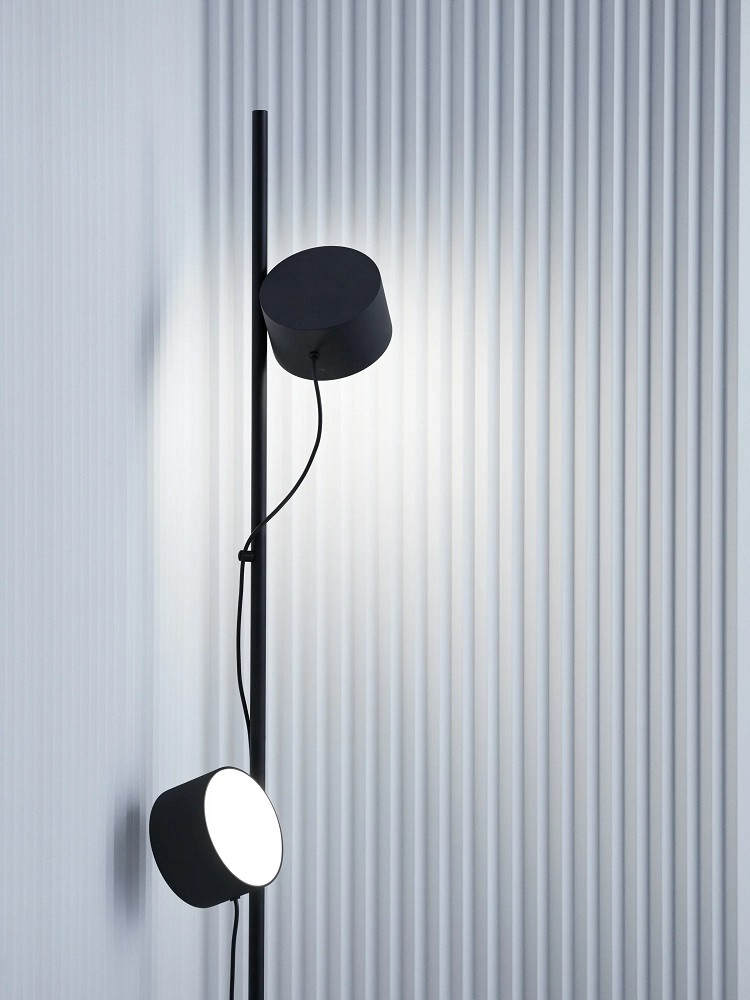 La "Post Floor Lamp" présente un design graphique et industriel. Les deux spots Leds sont munis d'un variateur indépendant. Ils pivotent à 360 ° autour de leur axe grâce à un système de fixation magnétique et peuvent éclairer en haut ou en bas.