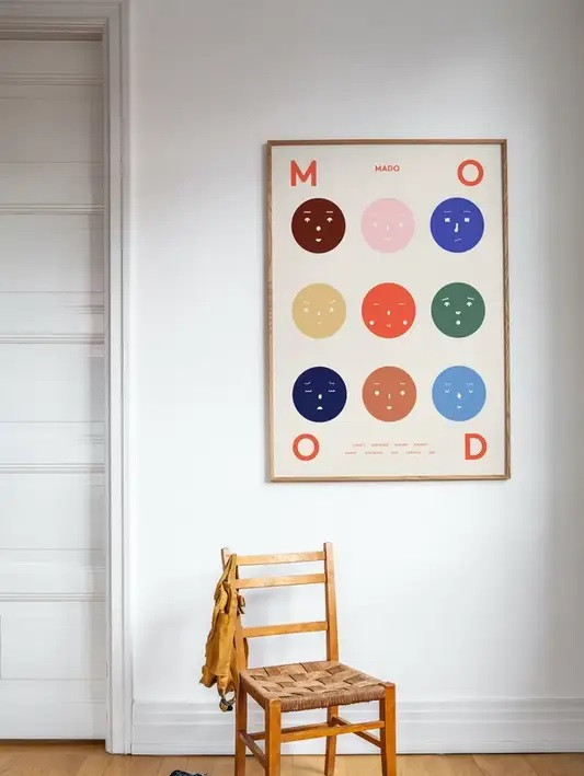 Nine Moods est une impression d'art qui montre tous les sentiments que vous ressentez dans la vie. Que vous soyez jeune ou adulte, c'est toujours une bonne idée de parler et de comprendre les sentiments que vous ressentez. Et nous aimons le faire de manière amusante et colorée.