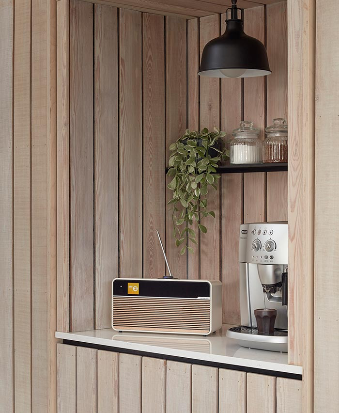 Cette radio affiche également des qualités acoustiques de haut niveau :amplification linéaire haute fidélité de classe AB – 18W – duo de haut-parleurs propriétaires Ruark NS+ de 7,5cm et égalisation adaptative.