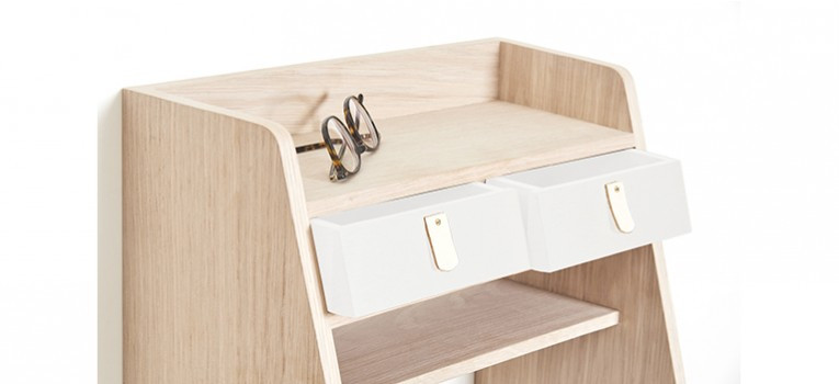 Cette étagère avec tiroirs est idéale dans les plus petits espaces. Elle est parfaite comme table de nuit murale.