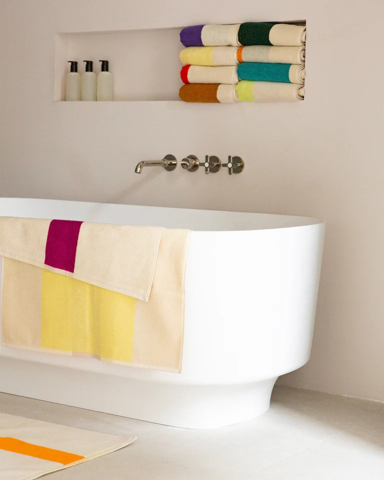 Belle serviette de bain colorée et graphique proposée par Suite 702.