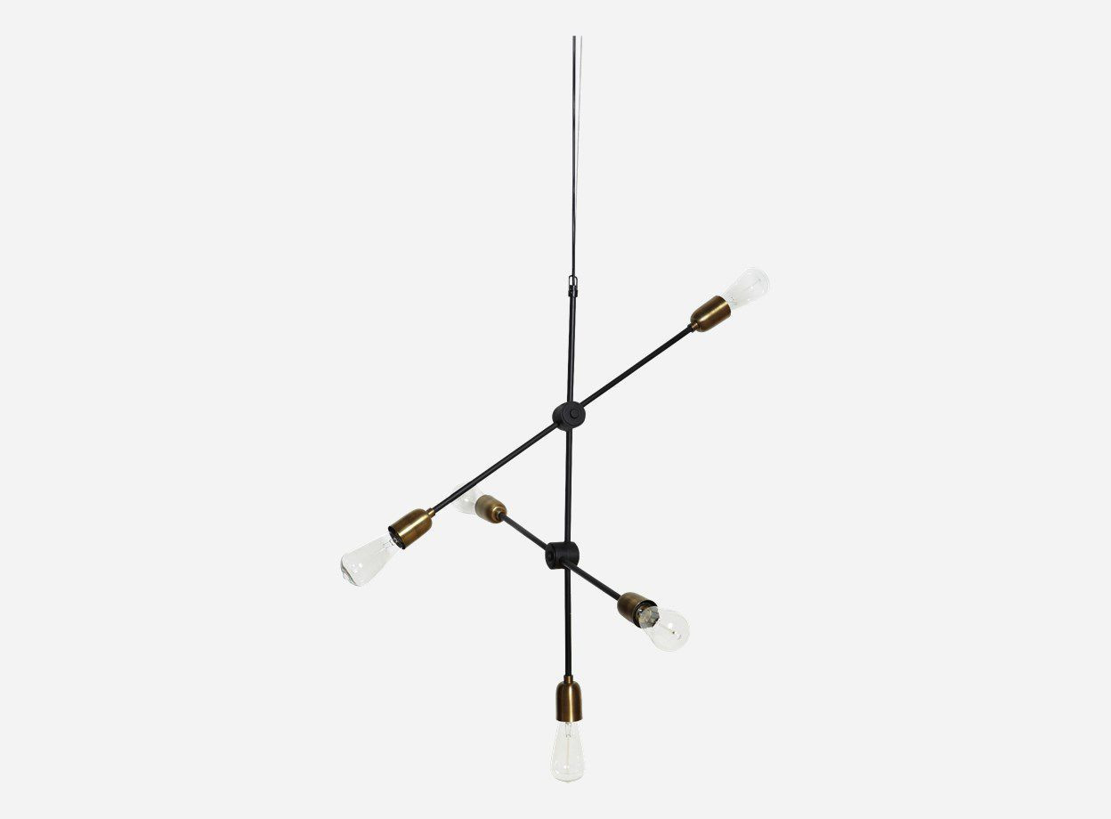 Comme son nom l'indique, "Molecular" s'inspire de la structure d'une molécule. Ses bras noirs articulés et ses soquets dorés évoquent le design industriel des années 50.