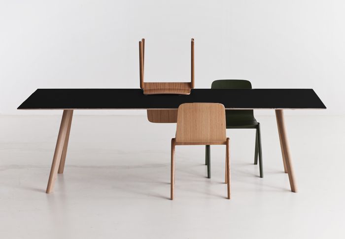 La table de salle à manger "Copenhague" (version 2,50 m) est une commande de l'éditeur de mobilier danois "Hay" aux frères Bouroullec. Elle a été conçue dans le cadre de l'aménagement de l'université de Copenhague (KUA). On apprécie son design léger presque élancé et son côté référentiel à l'univers scolaire.