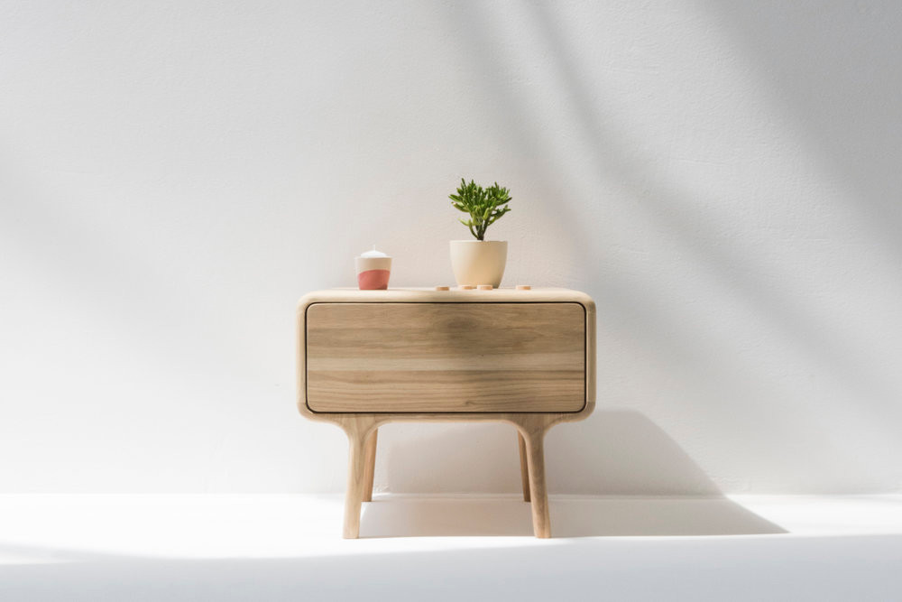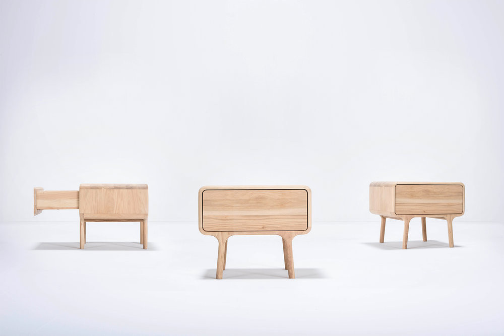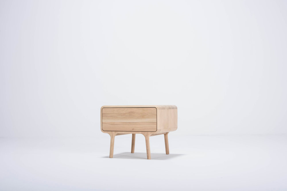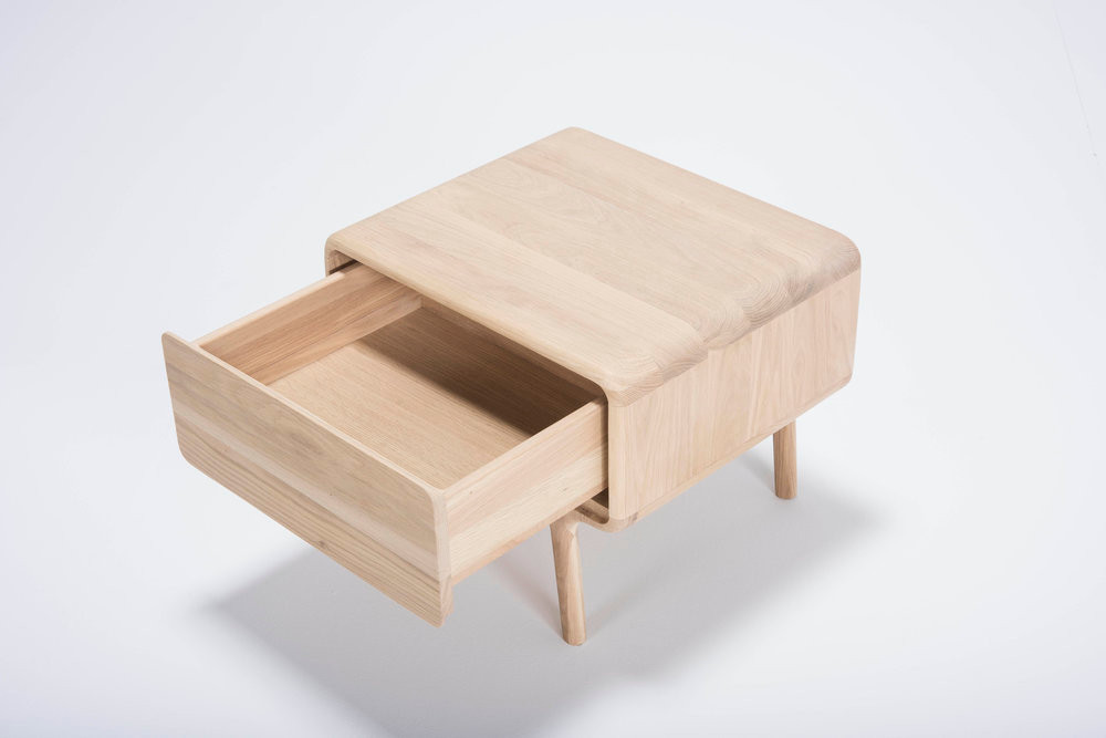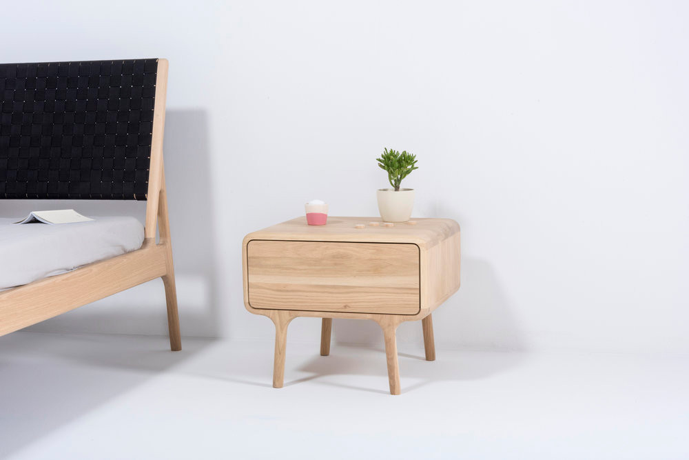 Table de nuit élégante en chêne massif éditée par Gazzda.