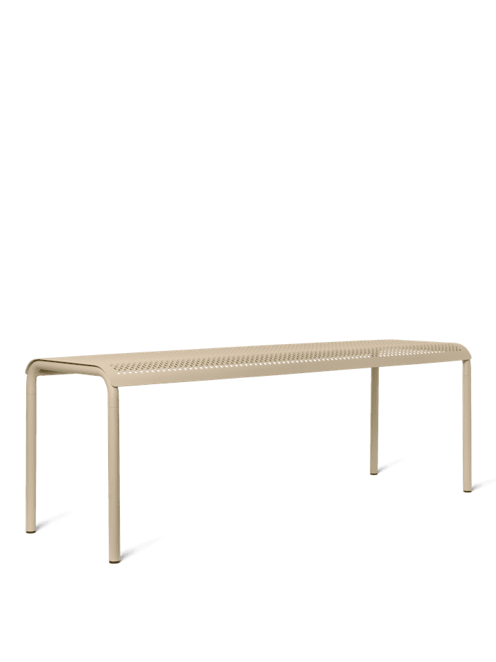 Pensée comme une ligne complète de mobilier d’extérieur (ici la table), Dapple s’inspire du jeu de lumière filtrant à travers les feuilles — ces ombres mouvantes qui donnent leur rythme aux journées d’été. Cette idée se traduit dans un motif perforé signature, à la fois graphique et fonctionnel, qui laisse circuler l’air et l’eau tout en allégeant visuellement chaque pièce.