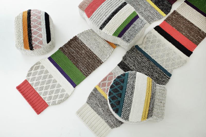 La collection de tapis design "mangas" s'inspire des chandails tricotés à la main.