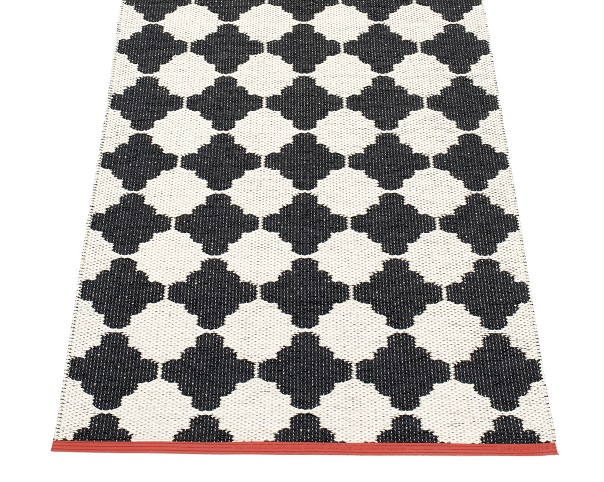 Tapis tissé issu de la tradition suédoise. Pappelina a su redonner vie à ces merveilleux tapis en introduisant un nouveau matériau (plastique), de belles couleurs et un graphisme moderne.
