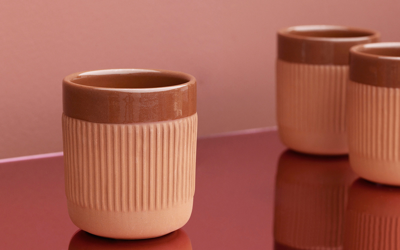 Belle tasse en terre cuite inspirée de l'artisanat méridional.