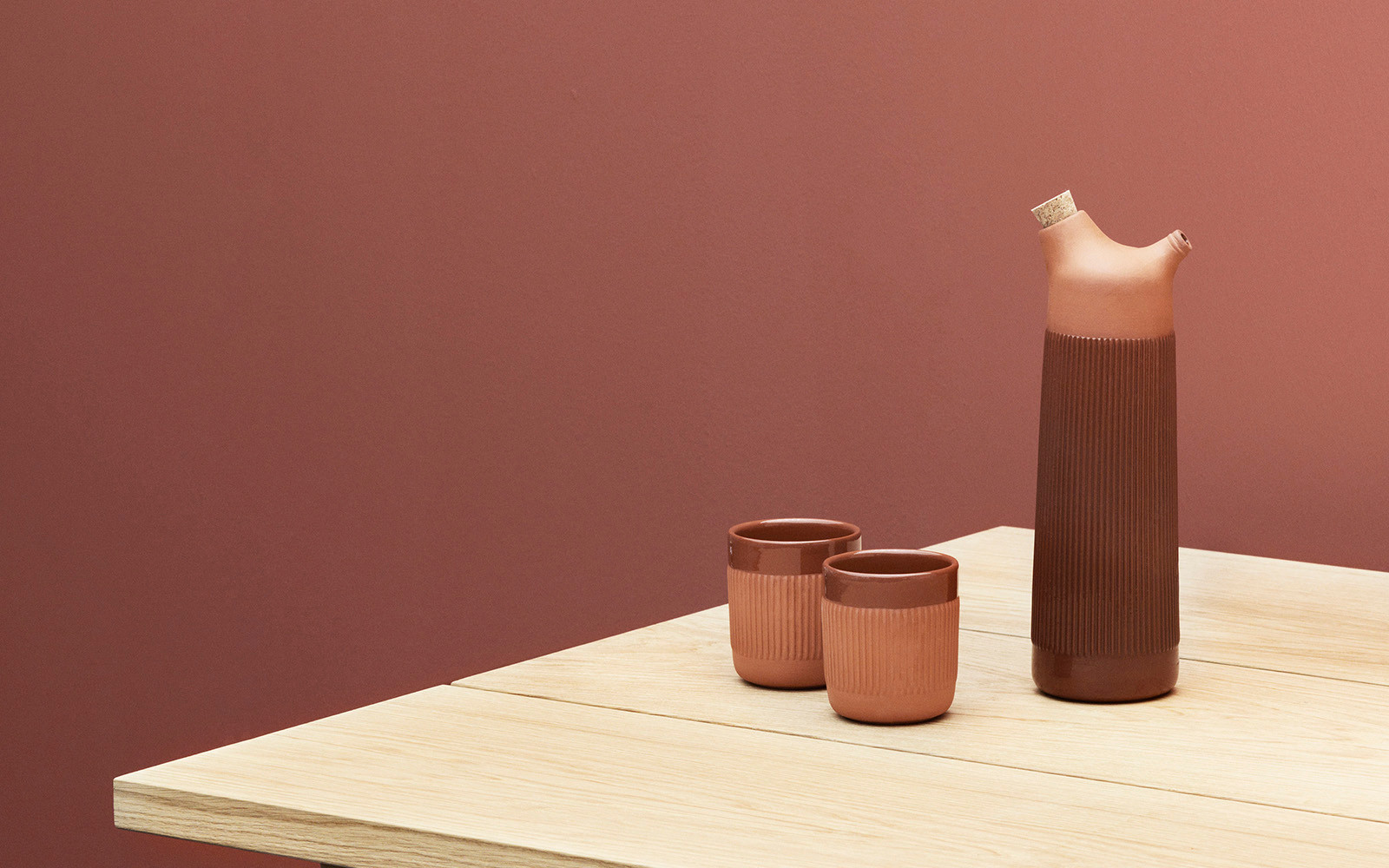La tasse Junto de Normann Copenhagen complète la carafe de la même collection.
