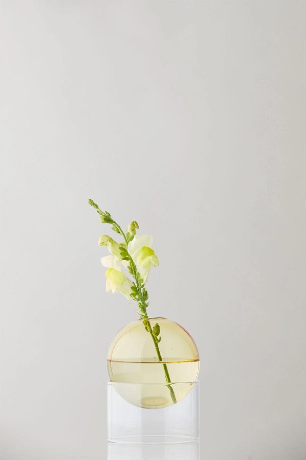 Ici le vase est disponible dans un beau jaune clair qui rappelle les touches chaudes du soleil. Le design du vase est simple et intemporel et constitue un moyen facile d'ajouter une touche de couleur au décor. Le pied du vase met en valeur le vase rond en verre organique et transforme vos petits bouquets de fleurs en une œuvre d'art flottante.