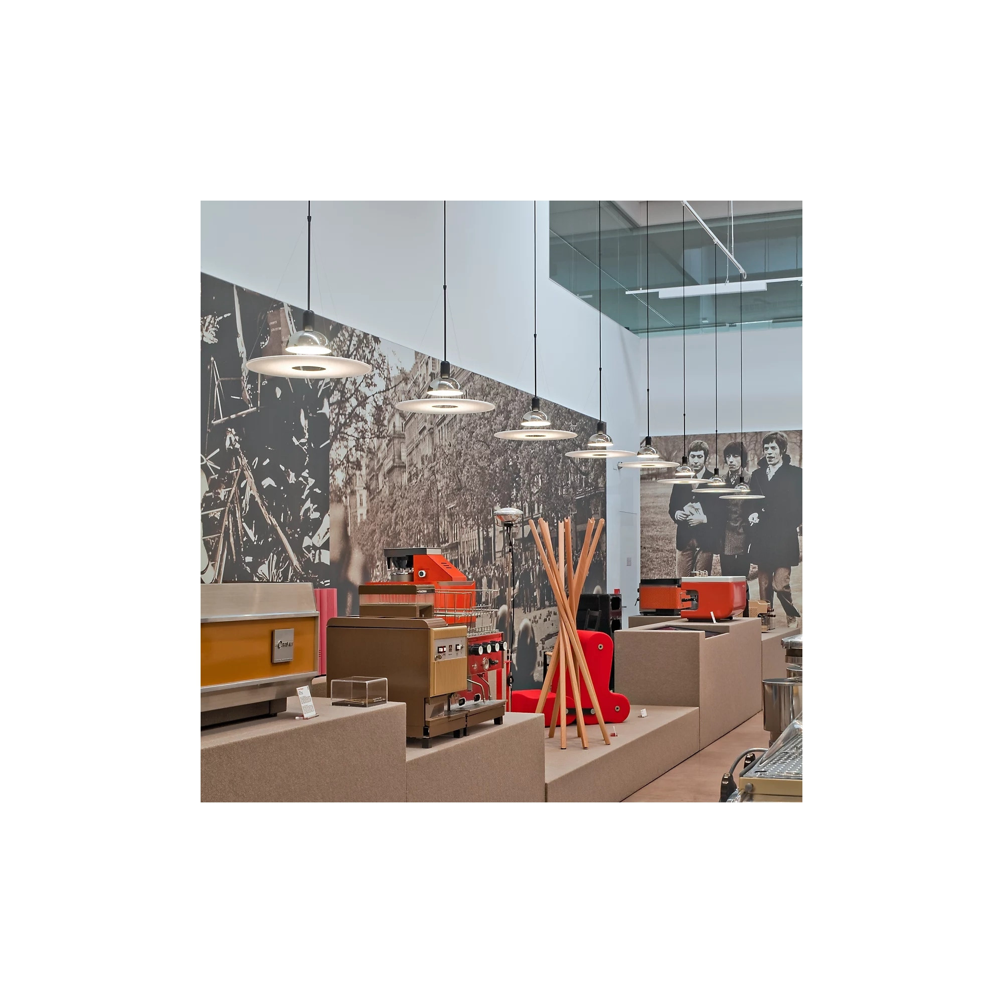 Ontworpen door Achille Castiglioni voor Flos, is de Frisbi hanglamp allesbehalve ouderwets. Ja hoor, ze dateert uit 1978, maar voelt vandaag nog altijd super fris aan. Waarom? Omdat ze strak design, slimme geometrie en een speels lichtspel perfect combineert.